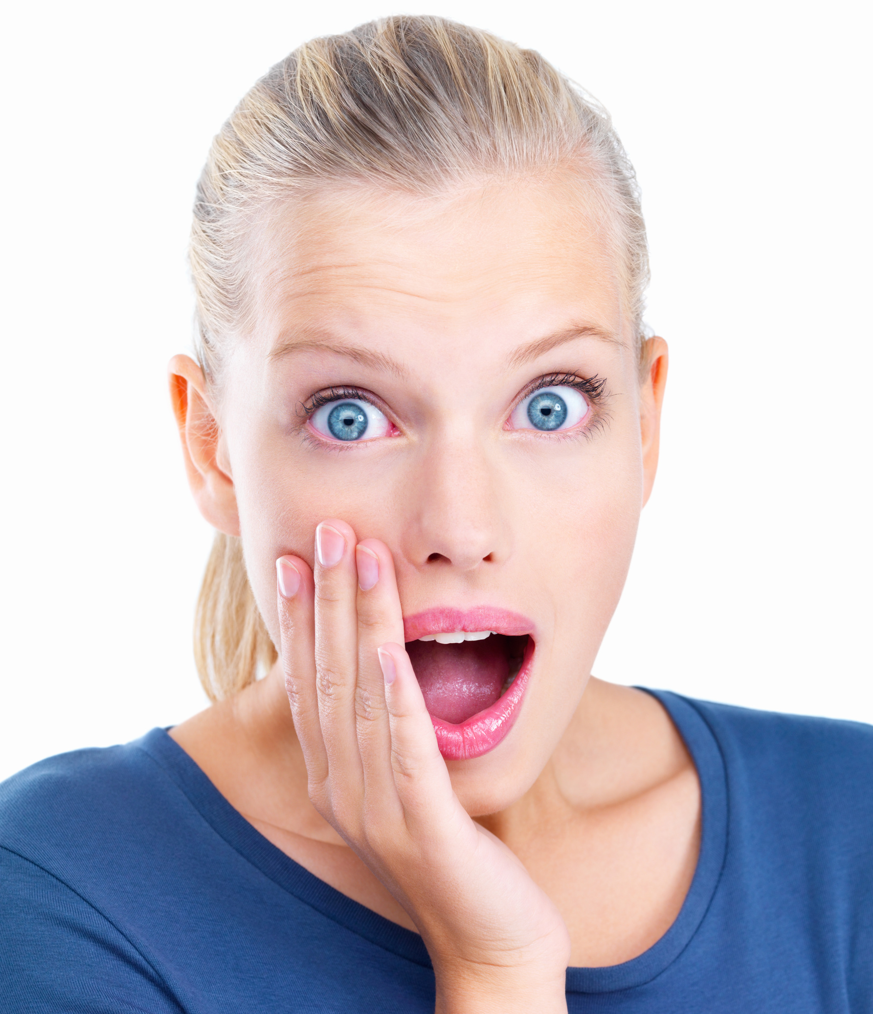 Isolated Portrait of a young woman looking surprised